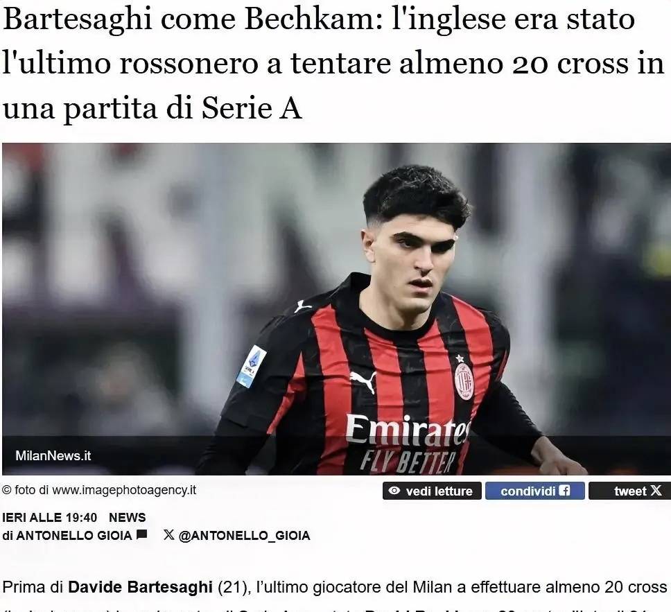 กระแสสื่อเซเรียอา: บัตชูอายี่ของมิลานส่งบอลข้าม 21 ครั้งในการแข่งขันกับเจนัว ทำสถิติเท่ากับเบ็คแฮม นัด: อินเตอร์