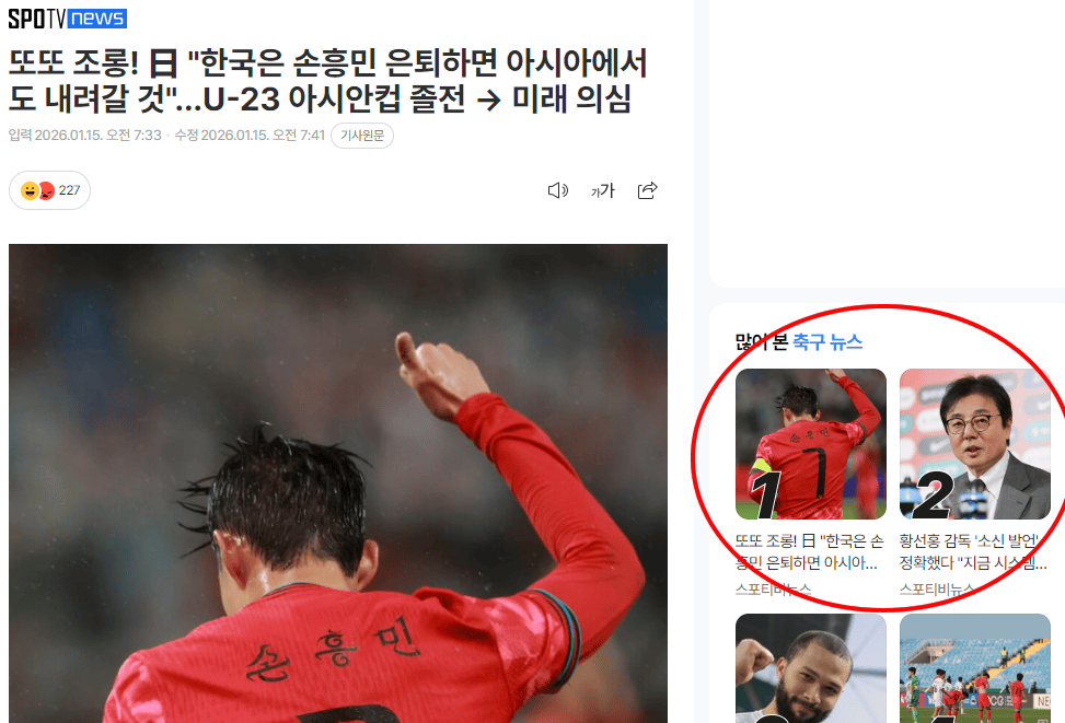 กำลังเป็นกระแสอันดับหนึ่ง! แฟนบอลญี่ปุ่น: เมื่อซน ฮึง-มิน เกษียณ ฟุตบอลเกาหลีใต้จะตกต่ำในเอเชีย_สื่อเกาหลี_ทีมชาติเกาหลีใต้_บทความ