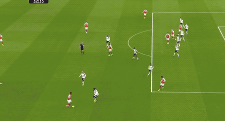 ในนาทีที่ 16 อาร์เซนอลได้ลูกเตะมุม บูกาโย ซากา เป็นผู้เตะลูกเตะมุม ยาซีน อัดลี โหม่งบอลที่เสาแรก วิลเลียม ซาลิบา โหม่งบอลแต่ไม่สามารถสร้างแรงได้เพียงพอ