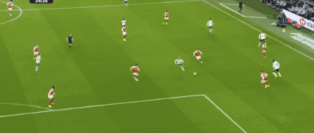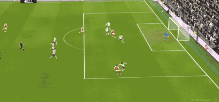 ในนาทีที่ 41 ทิมเบอร์และซาก้าได้เปิดฉากโจมตีต่อเนื่องทางฝั่งขวา โดยทรอสซาร์ดยิงโค้งเฉียดเสาออกไปอย่างหวุดหวิด