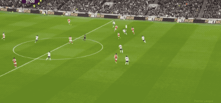 ในนาทีที่ 61 กองหลังของท็อตแน่ม ฮ็อตสเปอร์สเกิดความโกลาหลขึ้น ซาก้าได้โอกาสยิงเดี่ยวแต่ถูกสกัดไว้ได้ บอลกระดอนไปเข้าทางเอเซ่ที่ซัดเข้าไปเป็นประตูที่สองของเขาในเกมนี้ ทำให้เขายิงได้ถึงห้าประตูจากการเจอกับสเปอร์สในสองนัด แสดงให้เห็นถึงประสิทธิภาพที่น่าทึ่ง