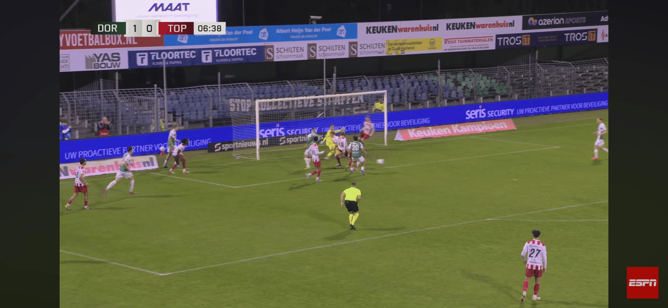 ในนาทีที่ 5 Dodler ทำไม้กางเขนจากปีกและลูกวอลเลย์ของ Yin Zhao ที่หน้าประตูถูกขวางโดยผู้พิทักษ์ของคู่ต่อสู้ มันเกิดขึ้นที่ลูกบอลตกลงไปที่เท้าของ Pei Shengjun เขาไม่ได้หยุดบอลและยิงตรงมุมบนขวาช่วยให้ทีมขึ้นนำ 1-0 นี่ยังเป็นประตูแรกของเซียวเป่ยที่เสี่ยวเป่ยทำประตูในฤดูกาลนี้ หลังจากนั้น Dodrecht มีโอกาสอีกครั้งและทำประตูได้สำเร็จ ในเวลาเพียง 10 นาที ทีมนำ 2-0 ไปแล้ว และหยินจ้าวหยงก็โจมตีคู่ต่อสู้ด้วยความเร็วครั้งแล้วครั้งเล่า