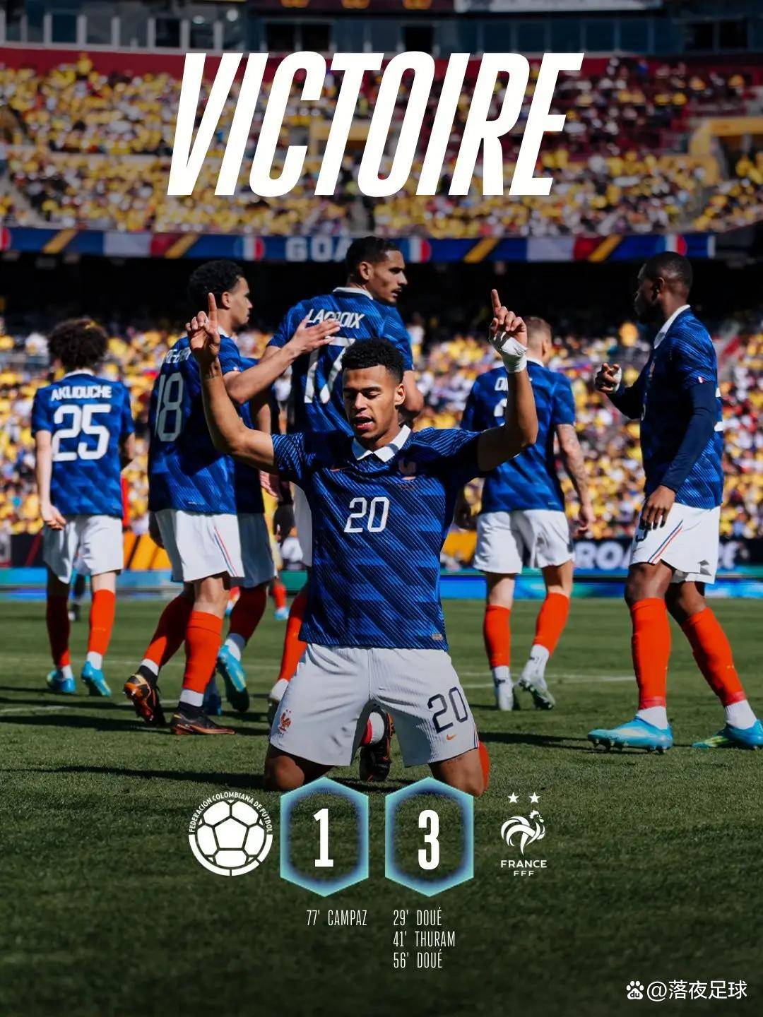 แมตช์กระชับมิตรนี้เป็น "การทบทวนแบบพาโนรามา" ของความลึกของผู้เล่นตัวจริงของทีมฝรั่งเศส และยังเป็นการแสดงช่องว่างระหว่างจุดแข็งและจุดอ่อนโดยตรงอีกด้วย Deschamps ทำการปรับอย่างกล้าหาญในกลุ่มเริ่มต้น นอกจากกองกลางของคันเต้ที่รักษาจังหวะให้คงที่แล้วกองหน้าทุกคนเช่น Mbappe, Debele และ Muani เข้าสู่รายชื่อสำรอง ในบรรดาสิบเอ็ดคนเริ่มต้น ผู้เล่นอายุน้อยเช่น Duer, Sherki และ Akliushe ครองครึ่งประเทศและอายุเฉลี่ยน้อยกว่า 25 ปี ในทางตรงกันข้ามโคลอมเบียได้ส่งกองกำลังหลักไปต่อสู้และดาวหลักทั้งหมดเช่น J Ronaldo, Louis Diaz, Davinson Sanchez ฯลฯ ล้วนอยู่บนเวทีและกำลังเล็งที่บ้าน (กองกำลังหลักยังคงใช้ในสนามที่เป็นกลาง) กู้คืนใบหน้า แต่ทั้งเกม โคลอมเบีย ถูกปราบจากการหมุนเวียนของฝรั่งเศสมาโดยตลอด คะแนน 1-3 ไม่ได้เป็นเพียงการสูญเสียครั้งใหญ่ที่สุดของโคลอมเบียนับตั้งแต่วันที่ 1-6 เมื่อวันที่ 17 พฤศจิกายน 2020 แต่ยังเป็นช่องว่างที่ใหญ่ที่สุดในพลังแข็งอีกด้วย