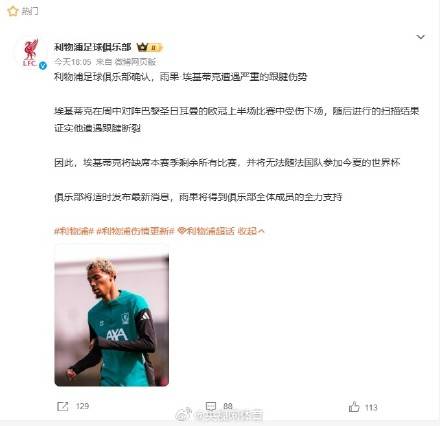 ลิเวอร์พูลประกาศอาการบาดเจ็บของเอกิติคอย่างเป็นทางการ ผู้เล่นยืนยันว่าเอ็นร้อยหวายแตก และการชำระเงินคืนในฤดูกาลไม่มีโอกาสได้เป็นตัวแทนของทีมฝรั่งเศสในฟุตบอลโลกช่วงซัมเมอร์นี้ ในลิเวอร์พูลและปารีส Ekitik ได้รับบาดเจ็บและล้มลงกับพื้นโดยไม่เผชิญหน้า ตามรายงานก่อนหน้านี้ เขาคาดว่าจะหายไปเก้าเดือน