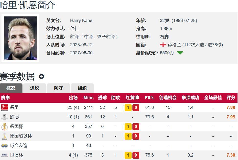 Kane มีชื่อเสียงในท็อตแนม เพื่อที่จะคว้าแชมป์รายการนี้ ผู้เล่นได้เข้าร่วมบาเยิร์นจากท็อตแนมด้วยค่าตัว 95 ล้านยูโรในช่วงซัมเมอร์ปี 2023 จนถึงตอนนี้ บาเยิร์นมี 136 เกม 136 เกมและ 31 แอสซิสต์จาก 139 เกม ประสิทธิภาพเกือบ 1 ประตูต่อเกมนั้นน่าทึ่งมาก เคนยังได้ตระหนักถึงความฝันของแชมป์ หลังจากคว้าแชมป์บุนเดสลีกาในฤดูกาลนี้ เคนจะนำบาเยิร์นไปคว้าแชมป์แชมเปี้ยนส์ลีก และบาเยิร์นได้ผ่านเข้าสู่รอบรองชนะเลิศของแชมเปี้ยนส์ลีก และจะเล่นเป็นแชมป์เปี้ยนในรอบรองชนะเลิศ แฟนบอลบอกว่านี่คือช่วงต้นๆ ของแชมเปี้ยนส์ลีก ฤดูกาลนี้