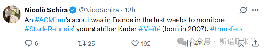 说句题外话,几年前曾经有另外一个梅特(Soualiho Meïté)从都灵租借加盟米兰半个赛季,米兰没有买断他,他在离开意甲之后去了本菲卡,目前31岁的梅特效力希腊球队PAOK。