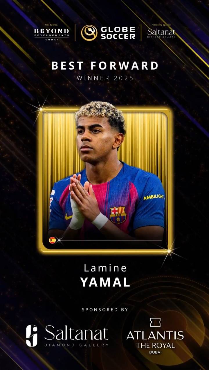 รางวัล Globe Foot ประจำปี 2025: นักเตะอายุต่ำกว่า 23 ปียอดเยี่ยมแห่งลาลีกา: ยามาล