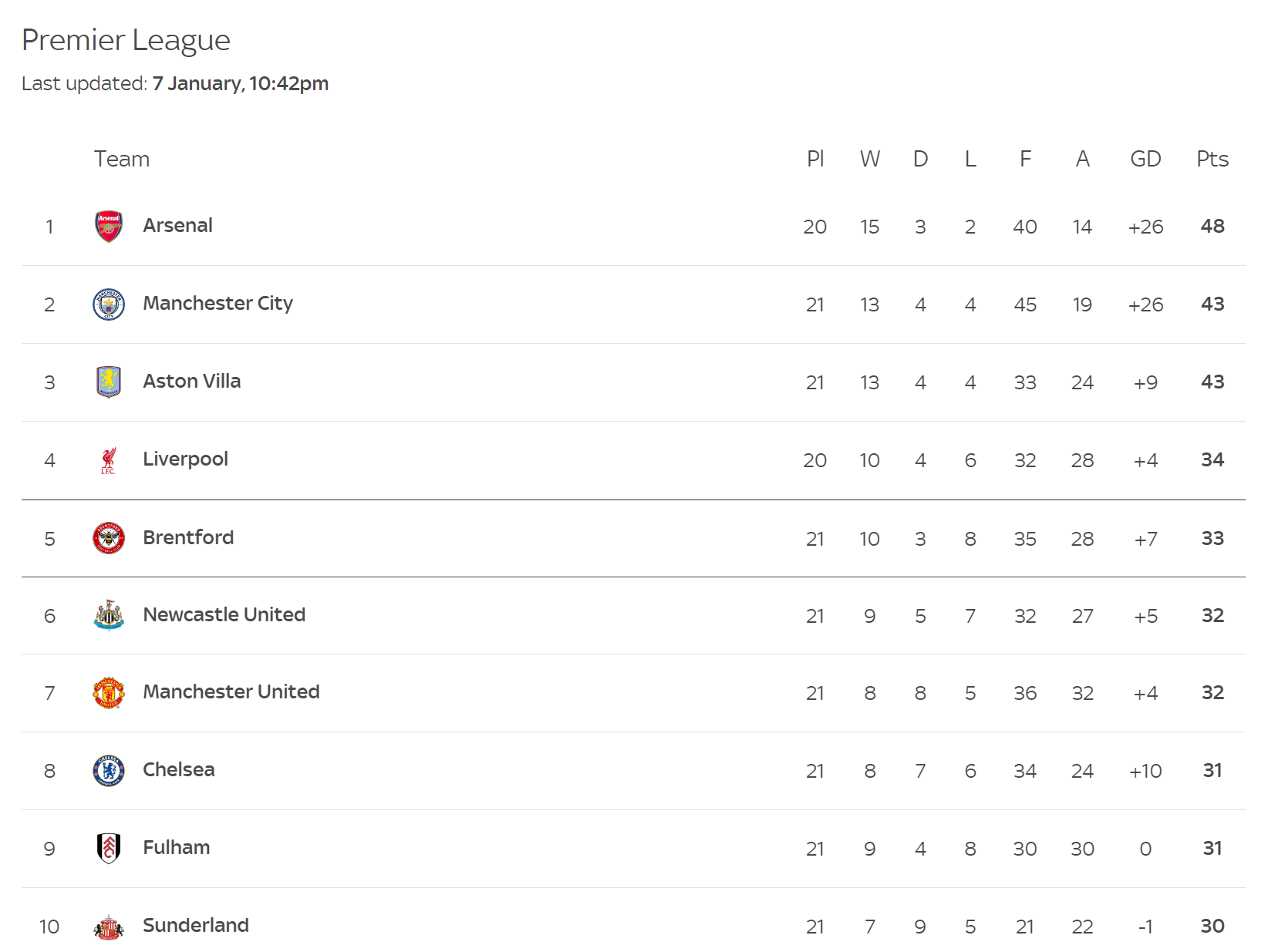 ในตารางลีก แมนเชสเตอร์ ยูไนเต็ด คว้าโอกาสจากการพ่ายแพ้ของเชลซีเพื่อแซงหน้าคู่แข่งได้สำเร็จ อย่างไรก็ตาม เบรนท์ฟอร์ดพุ่งขึ้นมาคว้าอันดับที่ห้าหลังจากถล่มซันเดอร์แลนด์ 3-0 ในรอบนี้ นิวคาสเซิล ยูไนเต็ด ก็แซงหน้าปีศาจแดงด้วยผลต่างประตูได้เสีย ทำให้ทีมของเฟลตเชอร์ร่วงลงมาอยู่อันดับที่เจ็ด