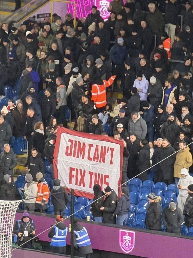 แฟนบอลปีศาจแดงได้แสดงความไม่พอใจต่อเจ้าของสโมสร เซอร์จิม แรตคลิฟฟ์ โดยชูป้ายในอัฒจันทร์ที่เขียนว่า 'จิมแก้ปัญหานี้ไม่ได้'