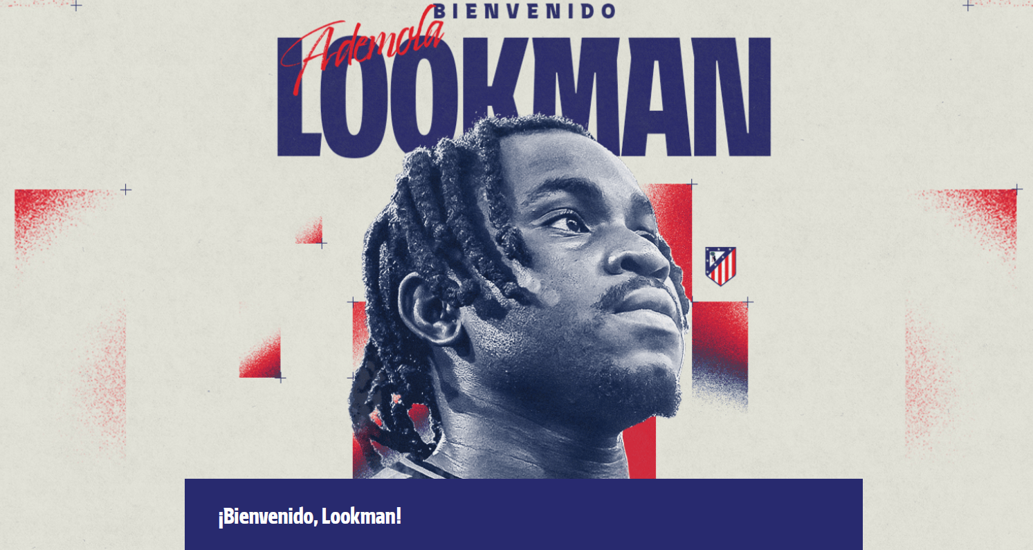 แอตเลติโก มาดริด และอตาลันต้า ได้บรรลุข้อตกลงในการย้ายทีมของอาเดโมลา ลุคแมน ซึ่งจะเซ็นสัญญากับสโมสรของเราจนถึงวันที่ 30 มิถุนายน 2030นักเตะสารพัดประโยชน์วัย 28 ปีรายนี้เป็นผู้เล่นที่อันตรายอย่างยิ่งด้วยเท้าขวาที่ถนัด สามารถเล่นได้ทั้งในตำแหน่งกองหน้าตัวที่สองหรือริมเส้น ไม่ว่าจะยิงด้วยเท้าข้างที่ถนัดหรือไม่ถนัด ความเร็วและความสามารถในการเลี้ยงบอลของเขาสร้างโอกาสให้กับทีมได้อย่างต่อเนื่อง