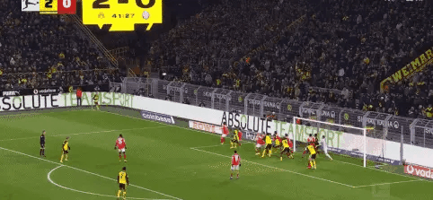 ในนาทีที่ 15, เรอุส ทำแอสซิสต์อีกครั้ง, โดยเบลเลรินโหม่งเข้าประตูไป ทำให้โบรุสเซีย ดอร์ทมุนด์ นำไป 2-0.
