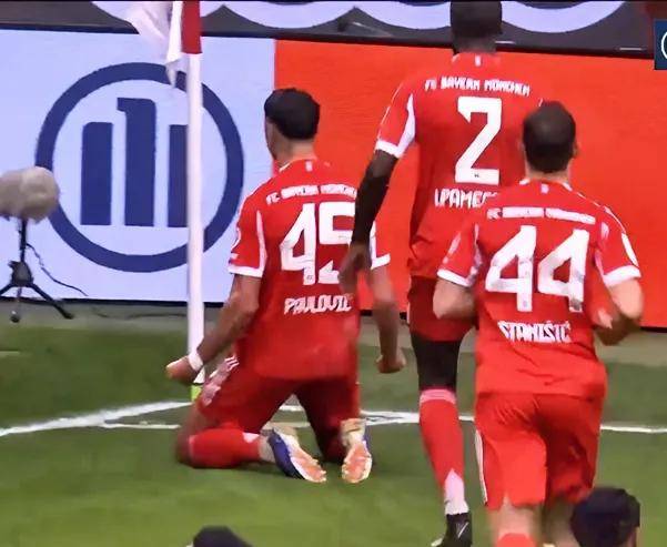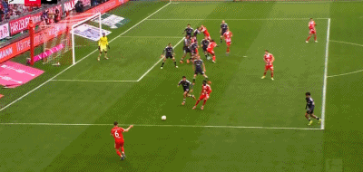 ในนาทีที่ 16 ของการแข่งขัน ประตูแรกก็เกิดขึ้น! ปาฟโลวิชซัดลูกอย่างแรง ผู้รักษาประตูซานโตสของแฟรงค์เฟิร์ตพยายามปัดแต่ไม่สามารถป้องกันได้ บอลพุ่งเข้าประตูไป! บาเยิร์น มิวนิค 1-0 ไอน์ทรัค แฟรงค์เฟิร์ต!
