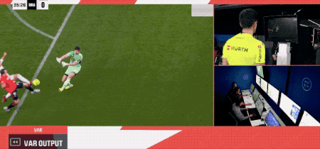 VAR ได้เข้าแทรกแซงอย่างรวดเร็ว และหลังจากตรวจสอบภาพย้อนหลัง ผู้ตัดสินได้เปลี่ยนคำตัดสิน ยกเลิกใบเหลือง ตัดสินว่าคูร์ตัวส์ทำฟาวล์ และให้จุดโทษ