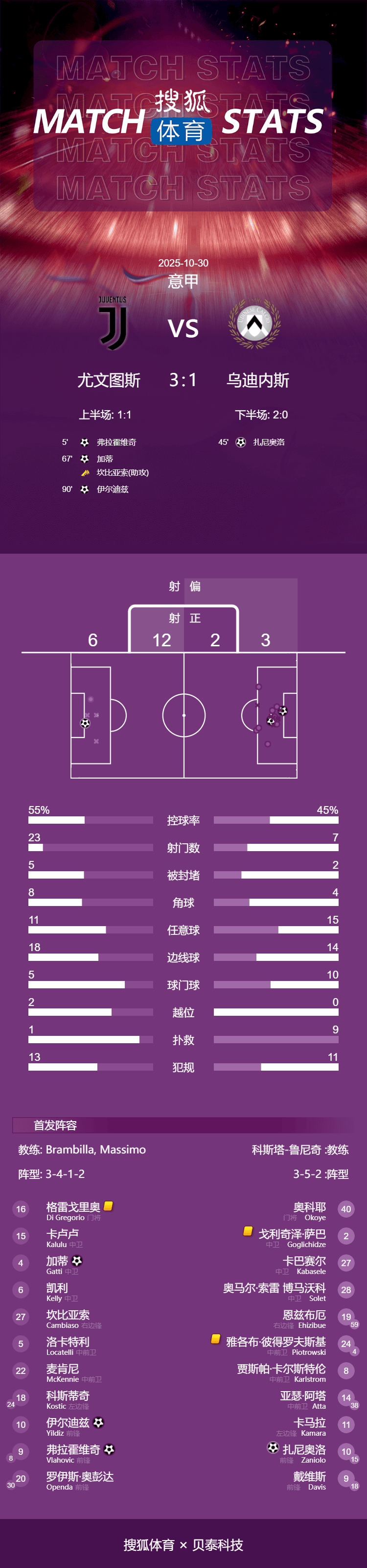 การแข่งขันจบลงด้วยชัยชนะของยูเวนตุสเหนืออูดิเนเซ่ 3-1