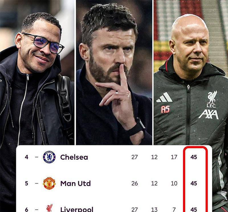 การแข่งขันพรีเมียร์ลีกในรอบที่ 27 ได้จบลงแล้ว 9 นัด โดยทุกสายตาจับจ้องไปที่การแข่งขันนัดสุดท้ายของแมนเชสเตอร์ ยูไนเต็ด ตารางคะแนนในขณะนี้แสดงให้เห็นสถานการณ์ที่ไม่ปกติ: เชลซี, แมนเชสเตอร์ ยูไนเต็ด และลิเวอร์พูล – สามทีมยักษ์ใหญ่ดั้งเดิม – มีคะแนนเท่ากันที่ 45 คะแนน อยู่ในอันดับที่ 4 ถึง 6 ตามลำดับ ในขณะที่ยูไนเต็ดมีเกมในมือหนึ่งนัด การพัฒนาครั้งนี้ทำให้การแข่งขันเพื่อคว้าตั๋วไปเล่นในแชมเปียนส์ลีกในฤดูกาลนี้ยิ่งคาดเดายากขึ้น