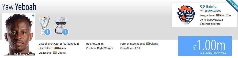 นักเตะต่างชาติคนใหม่คือ เย่ โบย่า ปีกวัย 28 ปีจากกานา ซึ่งอยู่ในช่วงพีคของอาชีพค้าแข้ง ตามข้อมูลจาก Transfermarkt มูลค่าของเขาอยู่ที่ 1 ล้านยูโร ทำให้เขาเป็นนักเตะต่างชาติที่มีชื่อเสียงที่สุดในทีมชิงเต่า ไฮเนียวสำหรับฤดูกาลใหม่ อย่างไม่ต้องสงสัย สำหรับไฮเนียวที่เพิ่งรอดพ้นจากการตกชั้นอย่างหวุดหวิดในฤดูกาลที่แล้วและต้องเผชิญกับฤดูกาลที่ท้าทายอีกครั้ง การเซ็นสัญญานี้ถือเป็นก้าวสำคัญในการแสวงหาความสำเร็จของสโมสร