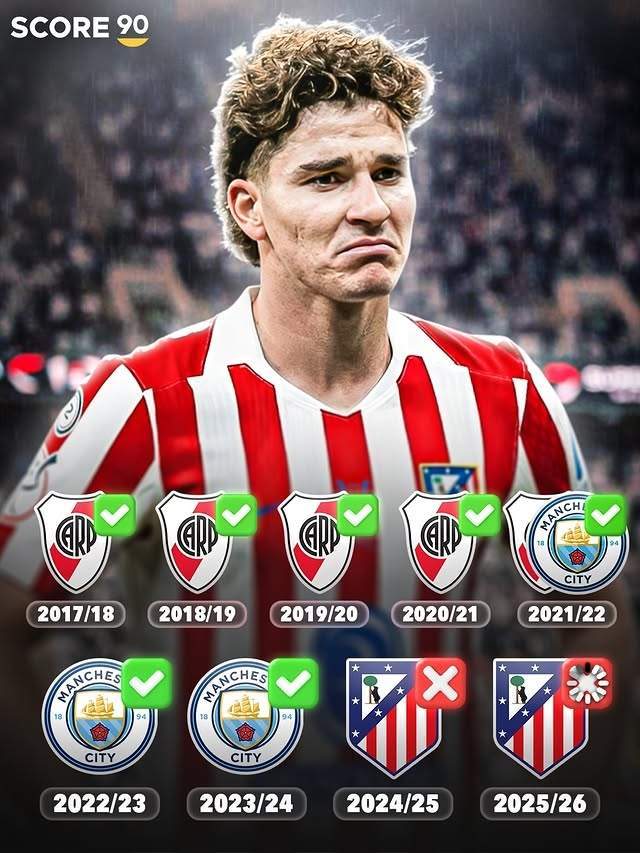 อัลวาเรซ กองหน้าชาวอาร์เจนตินาวัย 26 ปี เป็นแชมป์จริงๆ ในอาชีพ 7 ปีของเขาก่อนเข้าร่วม Atletico แมงมุมน้อยชนะ 17 แชมป์รวมถึงการแข่งขันชิงแชมป์รุ่นเฮฟวี่เวทเช่นฟุตบอลโลก, โคปาอเมริกา, แชมเปี้ยนส์ลีกและพรีเมียร์ลีก อย่างไรก็ตาม ในช่วงฤดูร้อนของหน้าต่างฤดูร้อนปี 2024 ของอัลวาเรซด้วยค่าตัว 75 ล้านยูโร ในปีครึ่งของการเข้าร่วมแมนเชสเตอร์ ซิตี้ แมงมุมตัวน้อยมี 9 มงกุฎภายใต้กลยุทธ์การประชุมของซิเมโอเน่ บางคนบอกว่าร่างกายแชมป์ของอัลวาเรซหายไป
