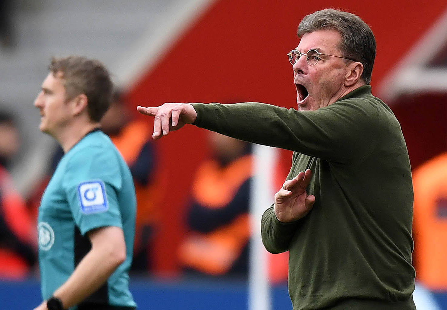 โค้ชโวล์ฟสบวร์ก แบล็ค โกลด์ (ขวา) ในวันที่ 4 เมษายน สั่งการข้างสนาม สำนักข่าวซินหัว (ภาพโดย Ulrich Hufnagher)