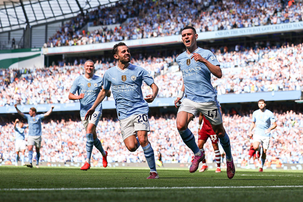 ประตูแรกเกิดขึ้นจากการโจมตีครั้งแรกของพวกเขา โดยฟิล โฟเดน – ผู้ที่เพิ่งได้รับการแต่งตั้งเป็นนักเตะยอดเยี่ยมแห่งฤดูกาลของพรีเมียร์ลีก – ทำให้ผู้จัดการทีมเป๊ป กวาร์ดิโอลา และแฟนบอลรู้สึกผ่อนคลาย ความกังวลที่เคยครอบงำเอทิฮัดเมื่อสองปีก่อนได้หายไป ถูกแทนที่ด้วยคลื่นแห่งการเฉลิมฉลองอย่างมีความสุขเมื่อได้ประตูขึ้นนำ แมนเชสเตอร์ ซิตี้ก็เริ่มเล่นอย่างมั่นใจมากขึ้น การโจมตีของพวกเขาไหลลื่นด้วยความแม่นยำอย่างน่าทึ่ง หากไม่ใช่เพราะ อัลฟองส์ อาเรโอล่า ที่เซฟลูกยิงจาก ดูกู, เดอ บรอยน์ และ โรดรี ได้ติดต่อกัน สี่แชมป์ติดต่อกันของทีมบลูส์ก็คงได้ถูกตัดสินไปนานแล้ว