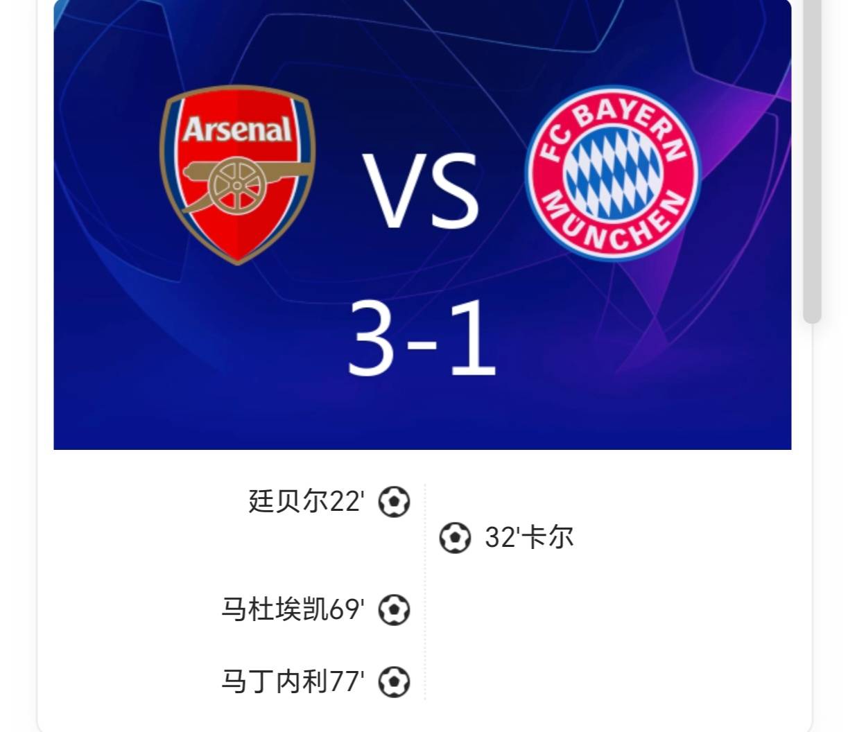 ในการแข่งขันรอบที่ห้าของแชมเปียนส์ลีกที่เพิ่งจบลง อาร์เซนอลเอาชนะบาเยิร์น มิวนิค 3-1 ในการแข่งขันระหว่างทีมจ่าฝูง