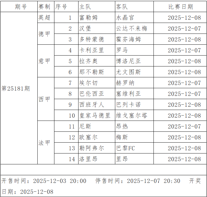 การแข่งขันฟุตบอลแบบชนะ-เสมอ-แพ้ และแบบเลือก 9 คู่ใดก็ได้ ฉบับที่ 25181 นี้ เป็นช่วงเวลาที่มีการแจกรางวัลพิเศษ ขอแนะนำให้ผู้สนใจเข้าร่วมอย่างมีความรับผิดชอบ รอบนี้ประกอบด้วยการแข่งขันจาก 5 ลีกชั้นนำของยุโรป ได้แก่ อังกฤษ เยอรมนี อิตาลี สเปน และฝรั่งเศส ไฮไลท์สำคัญคือการพบกันระหว่างนาโปลีและยูเวนตุสในศึกกัลโช่ เซเรีย อา ขณะที่เรอัล มาดริด ซึ่งเสียตำแหน่งจ่าฝูงลาลีกาไปแล้ว จะเปิดบ้านต้อนรับเซลต้า บีโก้