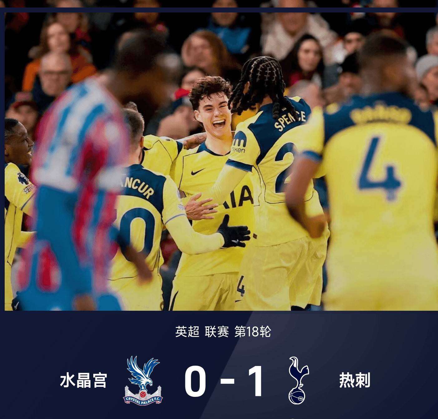 ตั้งแต่เมื่อคืนที่ผ่านมาจนถึงช่วงเช้าตรู่ของวันนี้ การแข่งขันสองนัดสุดท้ายของรอบที่ 18 ของพรีเมียร์ลีกได้สิ้นสุดลงแล้ว ทำให้ตารางคะแนนลีกสมบูรณ์ในที่สุด ซันเดอร์แลนด์และลีดส์ ยูไนเต็ด เสมอกัน 1-1 ขณะที่ท็อตแน่ม ฮ็อตสเปอร์ คว้าชัยชนะนอกบ้านเหนือคริสตัล พาเลซ 1-0 ผลการแข่งขันเหล่านี้ได้นำมาซึ่งการเปลี่ยนแปลงในตารางคะแนน